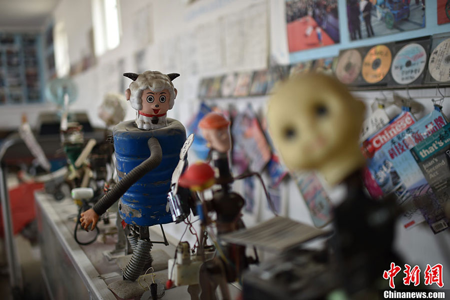 Farmer Wu Yulu from Beijing's Tongzhou District has spent more than 30 years making 63 robots. Each robot has its own unique function. [Photo: Chinanews.com]