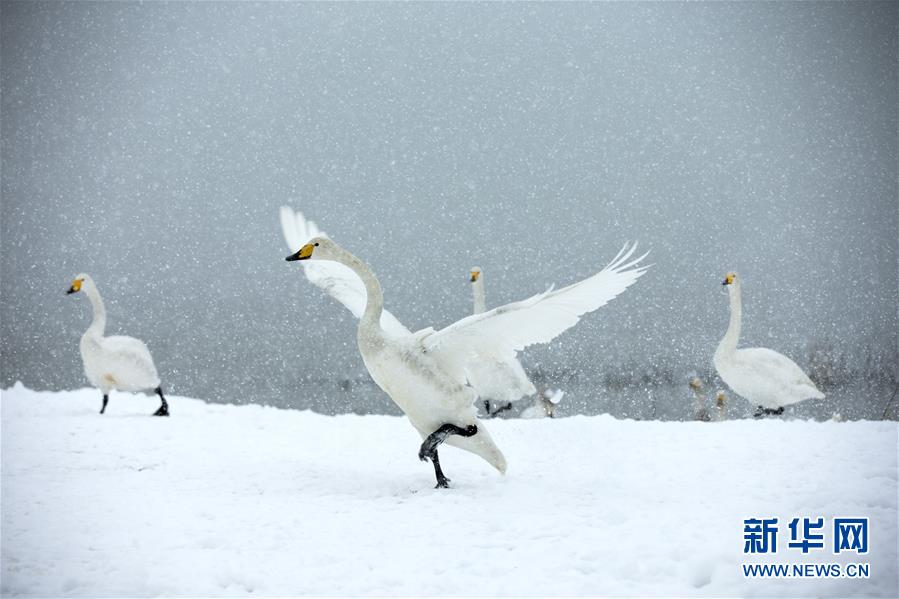 Swans are seen at a wetland on the Yellow River in Pinglu County, north China's Shanxi Province, Nov. 22, 2016. (Xinhua/Guo Gaimei)