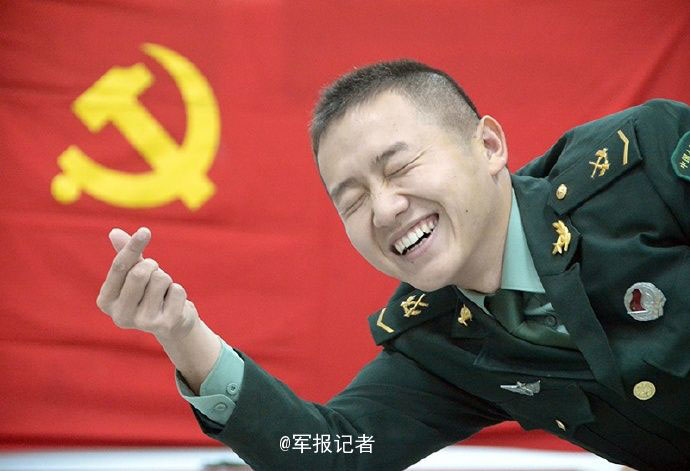 Chinese veterans put together a series of photos before they retire. The heart gestures express their gratitude and love for the army. [Photo/Sina Weibo]