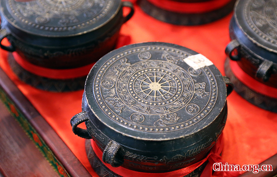 Bronze drum, a percussion usually seen in ethnic minority groups in Guangxi. [Photo by Zhang Lulu/China.org.cn]