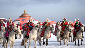 E-mail Xinhua, January 8, 2017| A Mongolian herdsman rides a horse at a winter Nadam fair in West Ujimqin Banner, north China's Inner Mongolia Autonomous Region, Jan. 7, 2017. The 5-day event kicked off here on Saturday. Nadam Fair, meaning "entertainment" or "recreation" in Mongolian, is a mass traditional Mongolian festival mainly filled with sports events. (Xinhua/Ren Junchuan) |
