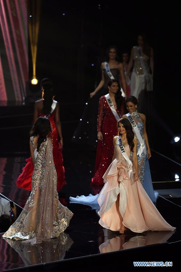 E-mail Xinhua, January 28, 2017| Miss Universe contestants in their evening gown walk onstage during the 65th Miss Universe national costume show in Pasay City, the Philippines, Jan. 26, 2017. Contestants from various countries and regions are in the Philippines for the 65th Miss Universe pageant. (Xinhua/Rouelle Umali) |