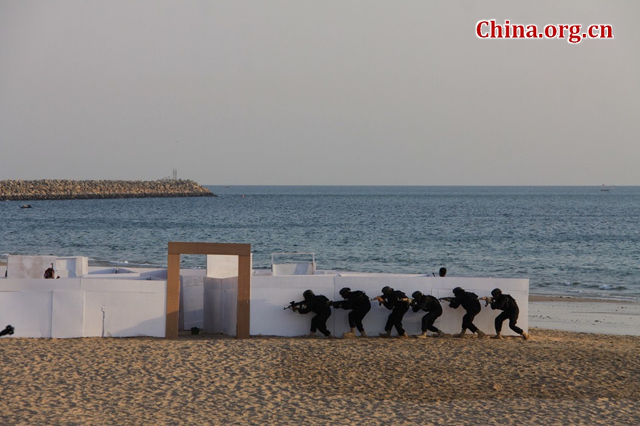 E-mail China.org.cn, February 12, 2017Rescuers approaching the terrorists’ hideouts. Pakistan Navy performed a counter terrorism demonstration in a naval base in Karachi, on Feb. 11, the second day of ongoing multinational Exercise AMAN-17.