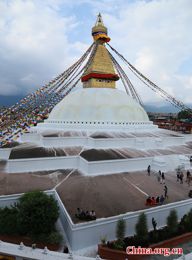 Boudhanath stupa in Kathmandu, Nepal, on August 15. As one of the largest stupas in the world, it is listed as a UNESCO World Heritage Site, attracting flocks of pilgrims and tourists every year. [Photo by Zhang Lulu/China.org.cn]