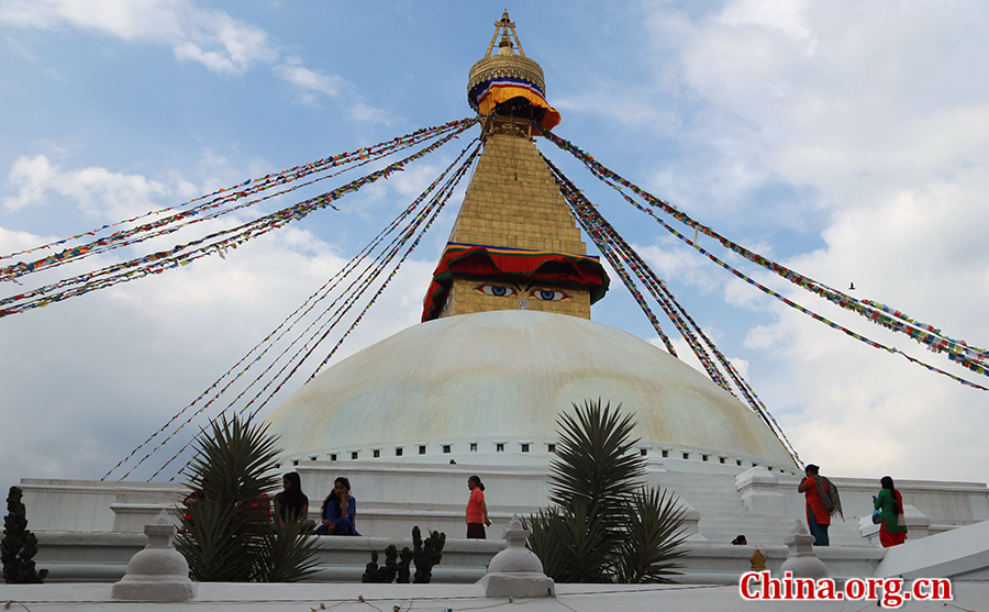 Boudhanath stupa in Kathmandu, Nepal, on August 15. As one of the largest stupas in the world, it is listed as a UNESCO World Heritage Site, attracting flocks of pilgrims and tourists every year. [Photo by Zhang Lulu/China.org.cn]