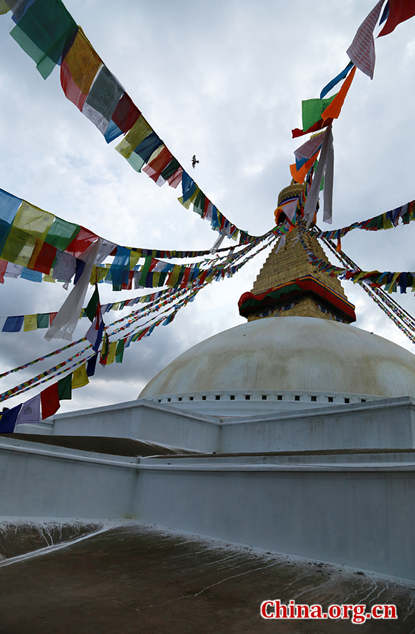 Boudhanath stupa in Kathmandu, Nepal, on August 15. As one of the largest stupas in the world, it is listed as a UNESCO World Heritage Site, attracting flocks of pilgrims and tourists every year. [Photo by Zhang Lulu/China.org.cn]