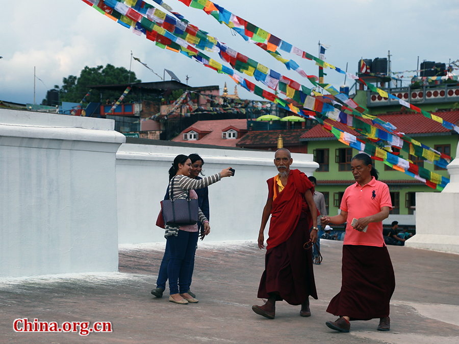 Boudhanath stupa in Kathmandu, Nepal, on August 15. As one of the largest stupas in the world, it is listed as a UNESCO World Heritage Site, attracting flocks of pilgrims and tourists every year. [Photo by Zhang Lulu/China.org.cn]