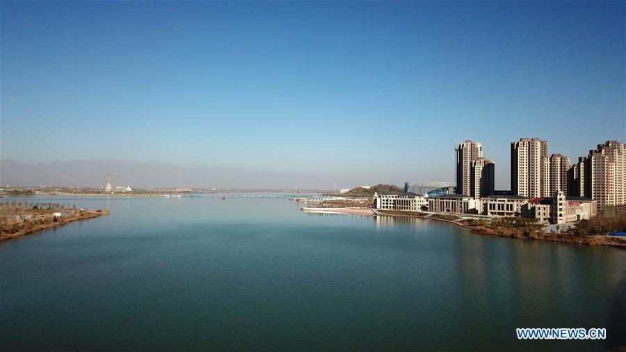 Aerial photo taken on Nov. 14, 2017 shows the scenery of the Yuehai Lake in Yinchuan, capital of northwest China's Ningxia Hui Autonomous Region. The wetland area in Yinchuan has reached to 53,000 hectares after local authorities took measures for wetland protection and construction. (Xinhua/Li Ran)