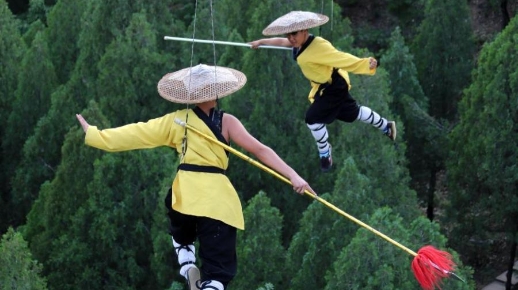E-mail Ecns.cn, April 29, 2018Kung Fu masters practice martial arts and Shaolin Kung Fu 80 meters above Mount Song for the Shaolin Zen Music Ritual in Dengfeng, C China's Henan province, on April 28, 2018. The show premiered in 2007 and has been performed over 4,000 times. (Photo: China News Service/Wang Zhongju)