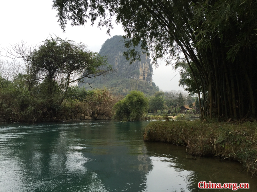 E-mail China.org.cn, May 28, 2018Shi Wai Tao Yuan, also known as Shangri-La Park, is an AAAA-level rated scenic spot located in Yangshuo county, Guilin, Guangxi Zhuang autonomous region. It is famous for its beautiful karst scenery and the traditional customs of the Zhuang and other local ethnic minorities, which can make tourists feel far away from the turmoil of the world. The name, meaning “land of peach blossoms,” originated from the peaceful land described in an essay by Tao Yuanming, an idyllist of the Eastern Jin Dynasty (317-420). [Photo by Li Na / China.org.cn]
