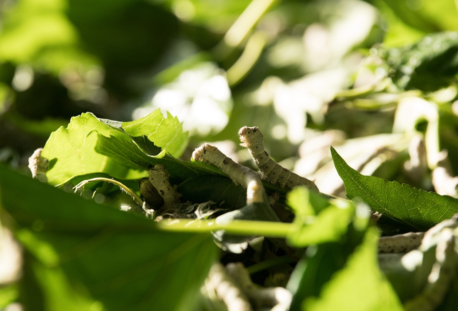 E-mail Xinhua, July 3, 2018Silkworms are seen at a silkworm breeding base of Cathaya Group in Xiajiang Village of Chun'an County, east China's Zhejiang Province, May 9, 2018. Chun'an County cooperated with Cathaya Group in building silkworm breeding bases to produce high quality cocoon and silk products. To date, about 4,000 hectares mulberry bushes have been cultivated and some 300 tonnes raw silk are produced per year. (Xinhua/Weng Xinyang)