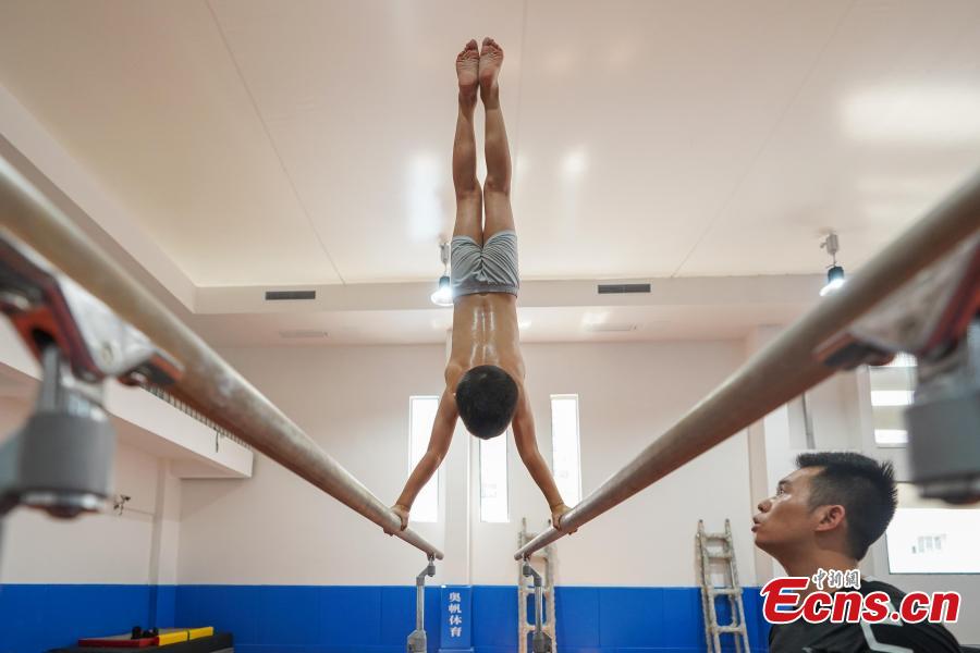 E-mail Ecns.cn, July 17, 2018Instructor Liu Shiya trains student Ye Zhansong at the Amateur Children's Gymnastics Training School in Rongjiang County, Southwest China's Guizhou Province, July 16, 2018. There are 60 children taking part in gymnastics training at the school during their spare time. Since 1972, the county has sent 21 athletes to the provincial gymnastics and gymnastics trampoline teams, among whom six later became national team members. The county is home to Liu Rongbing, who won a gold medal for the men's team in the 2014 World Artistic Gymnastics Championships. (Photo: China News Service/He Junyi)