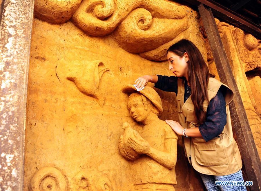E-mail Xinhua, August 15, 2018A Syrian artist works to perfect a sculpture on the wall of a formerly rebel-run underground tunnel in the Jobar neighborhood in the Eastern Ghouta countryside of the capital Damascus on Aug.14, 2018. Syrian artists have turned the tunnels into sculpture gallery after the defeat of rebels in Eastern Ghouta last April. (Xinhua/Ammar Safarjalani)