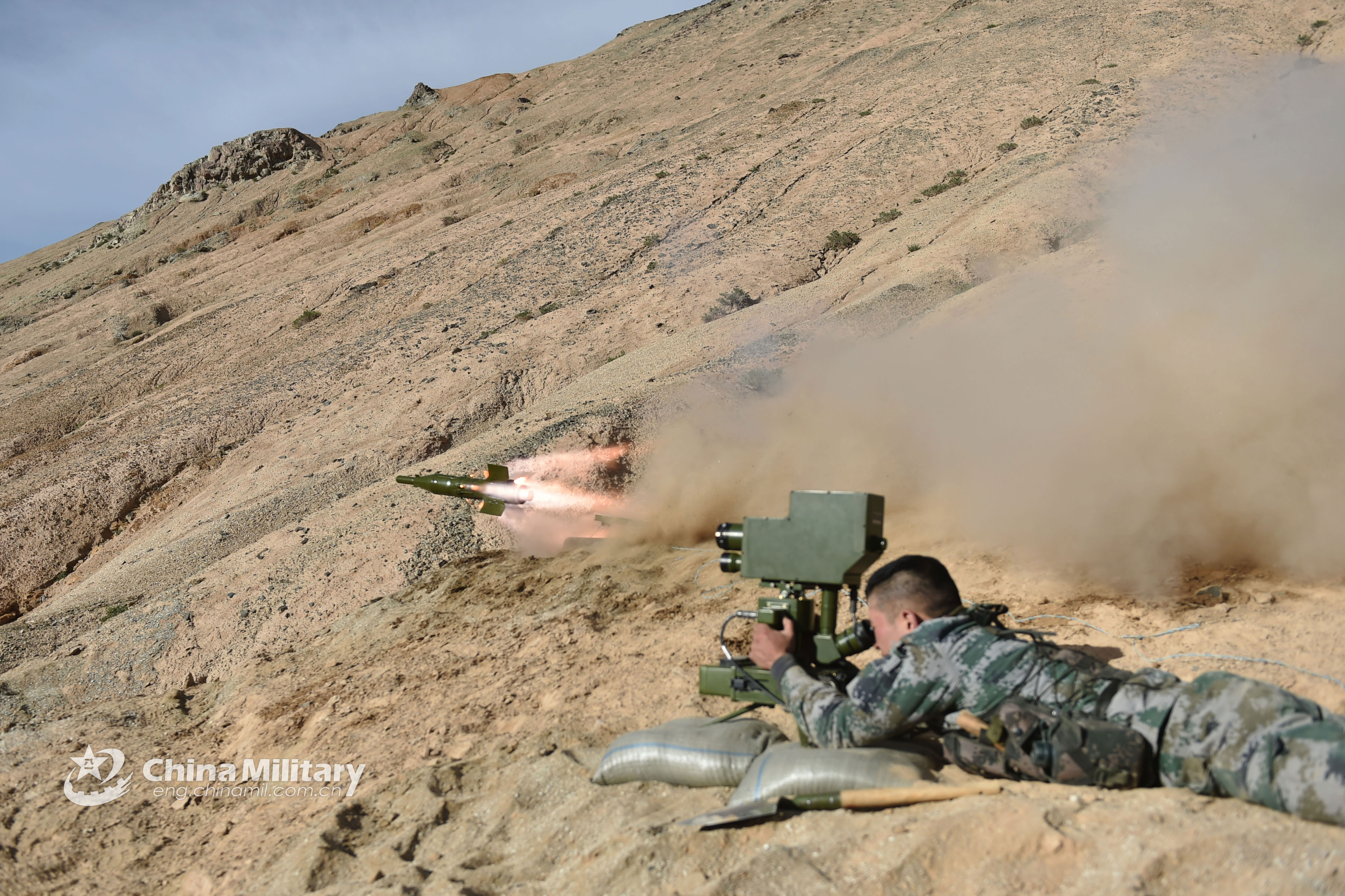 E-mail China Military Online, August 21, 2018An artilleryman assigned to a brigade under the PLA 76th Group Army fires an HJ-73 anti-tank missile system during a live-fire test in the hinterland of the Kunlun Mountains on August 18, 2018. (eng.chinamil.com.cn/Photo by Wang Guangyao)