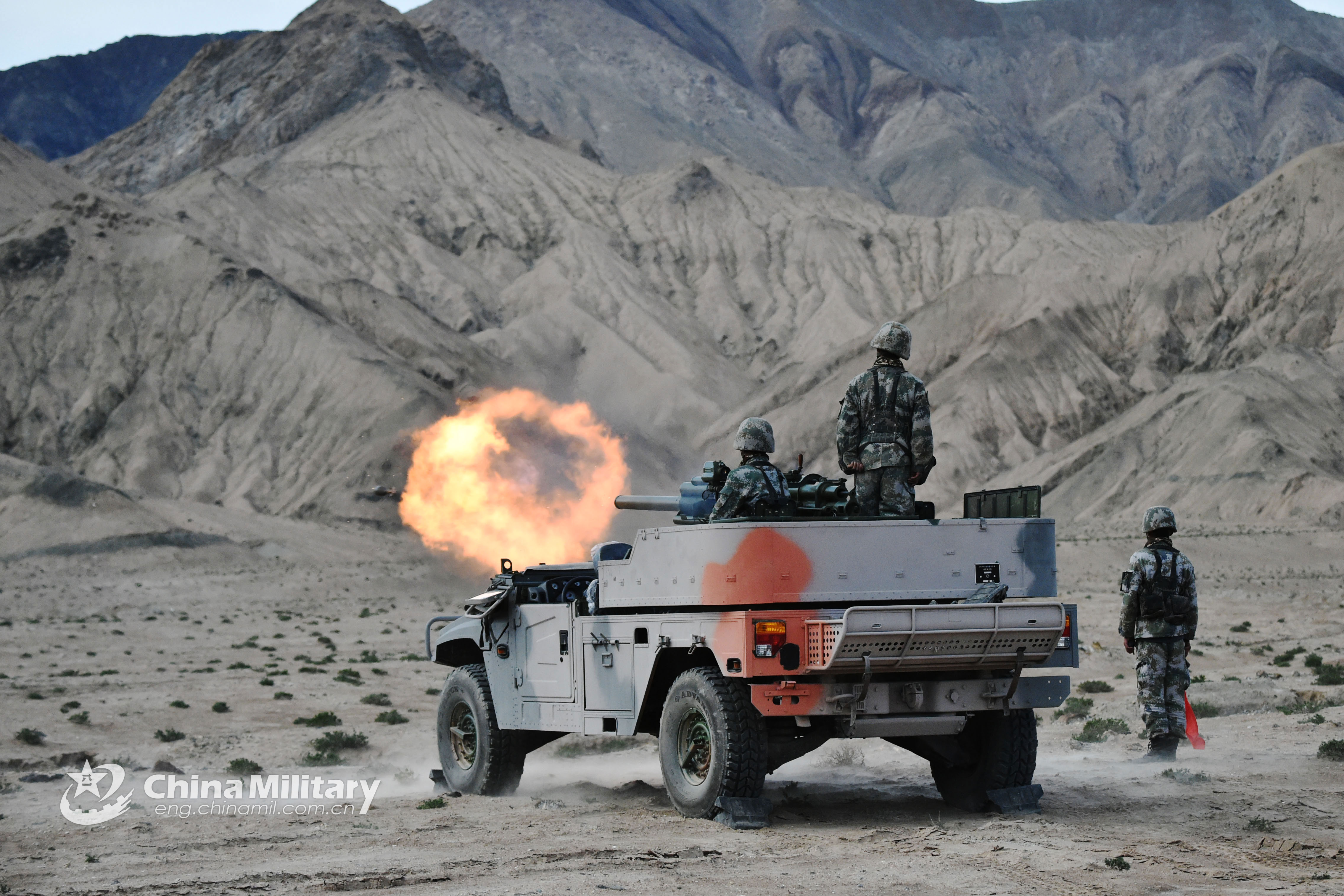 E-mail China Military Online, August 21, 2018Artillerymen assigned to a brigade under the PLA 76th Group Army fire their PCP-001 82mm vehicle-mounted self-propelled mortar system at mock targets during a live-fire test in the hinterland of the Kunlun Mountains on August 18, 2018. (eng.chinamil.com.cn/Photo by Wang Guangyao)