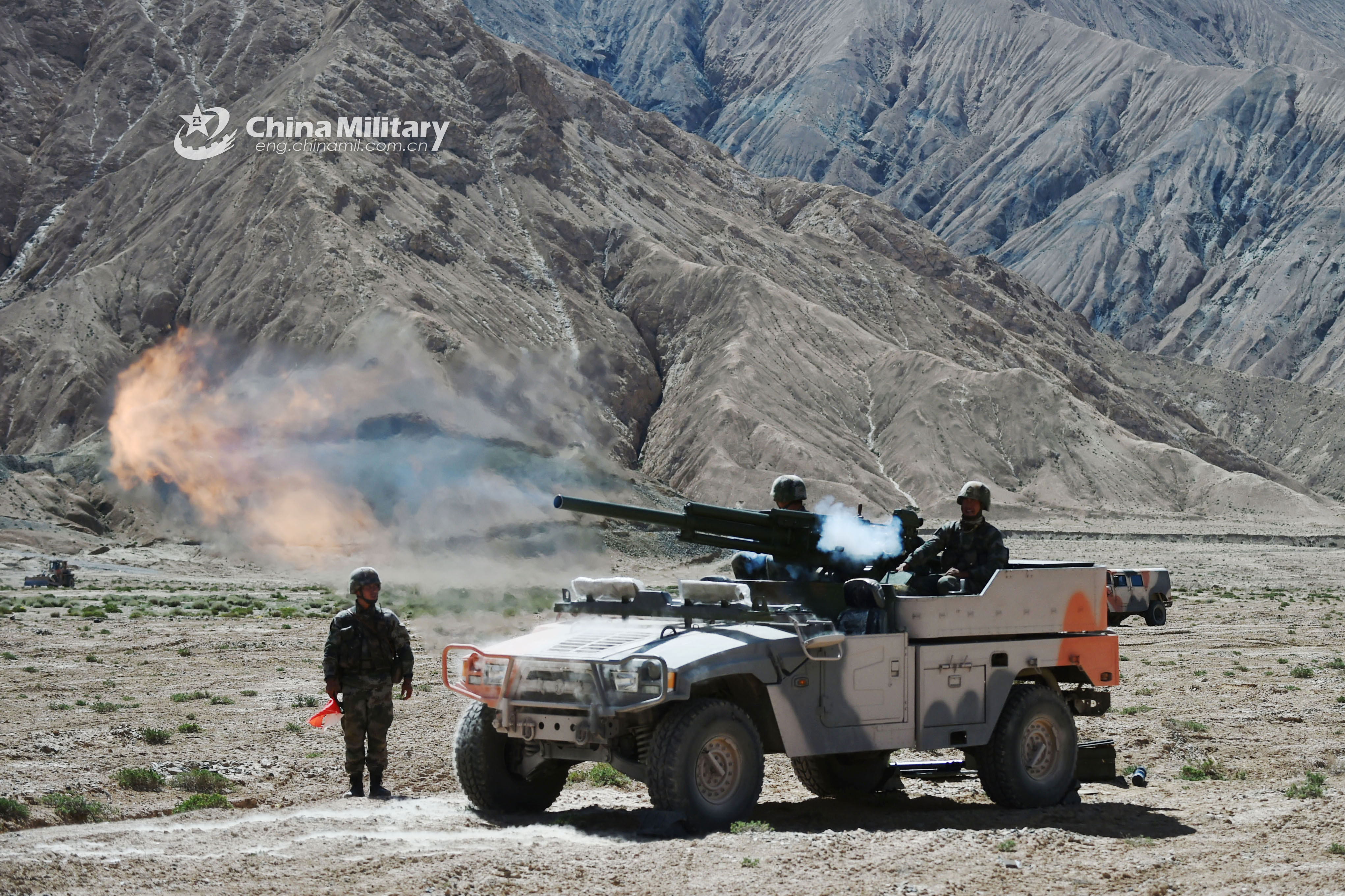 E-mail China Military Online, August 21, 2018Artillerymen assigned to a brigade under the PLA 76th Group Army fire their PCP-001 82mm vehicle-mounted self-propelled mortar system at mock targets during a live-fire test in the hinterland of the Kunlun Mountains on August 18, 2018. (eng.chinamil.com.cn/Photo by Wang Guangyao)