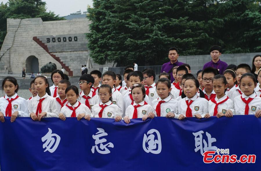 E-mail Ecns.cn, September 19, 2018Students mourn the deceased in silence at the Memorial Hall of the Victims in Nanjing Massacre by Japanese Invaders in Nanjing City, Jiangsu Province, Sept. 18, 2018. On September 18, 1931, the Japanese Kwantung Army stationed in northeast China destroyed a section of the railway near Liutiaohu and then falsely accused the Chinese military of causing the explosion. Using this as a pretext, the Japanese then bombarded Shenyang and began invasion of northeast China. (Photo: China News Service/Yang Bo)
