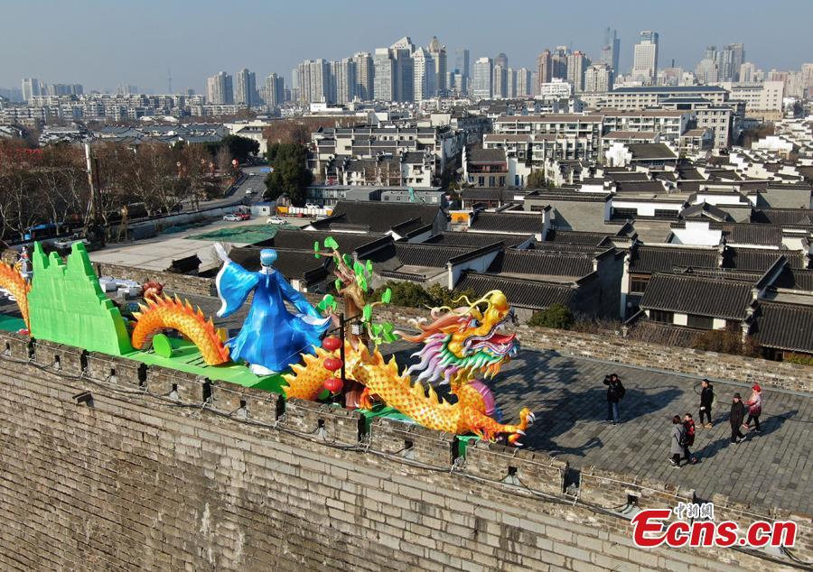 E-mail Ecns.cn, January 29, 2019Colored dragon lanterns are installed on the Ming Dynasty (1368-1644) city wall ahead of the Spring Festival, China's Lunar New Year, in Nanjing City, Jiangsu Province, Jan. 27, 2019. (Photo: China News Service/Yang Bo)
