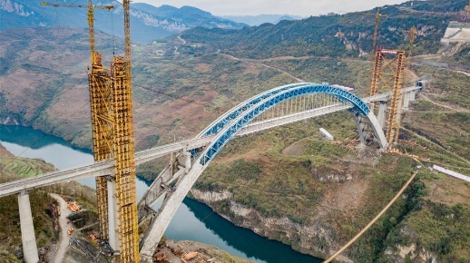 E-mail Xinhua, March 15, 2019Aerial photo taken on March 14, 2019 shows the Yachihe Bridge of the Chengdu-Guiyang high-speed railway under construction in Qianxi, southwest China's Guizhou Province. The construction of the Yachihe Bridge of the Chengdu-Guiyang high-speed railway will be completed by the end of 2019. (Xinhua/Liu Xu)