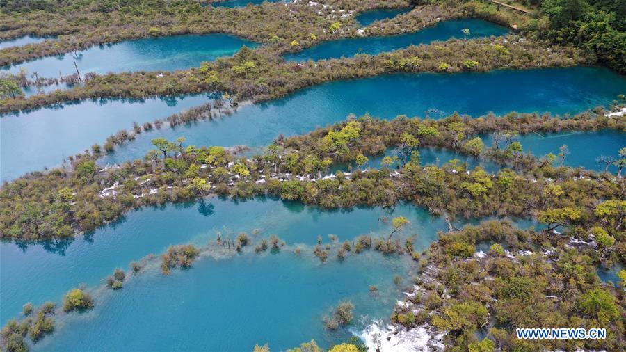 E-mail Xinhua, September 25, 2019Aerial photo taken on Sept. 23, 2019 shows a view of the Jiuzhaigou National Park in southwest China's Sichuan Province. Part of the Jiuzhaigou National Park in southwest China's Sichuan Province will reopen to visitors on Friday on a trial basis, over two years after it was hit by a powerful earthquake, local authorities said Monday. (Photo by Wang Xi/Xinhua)