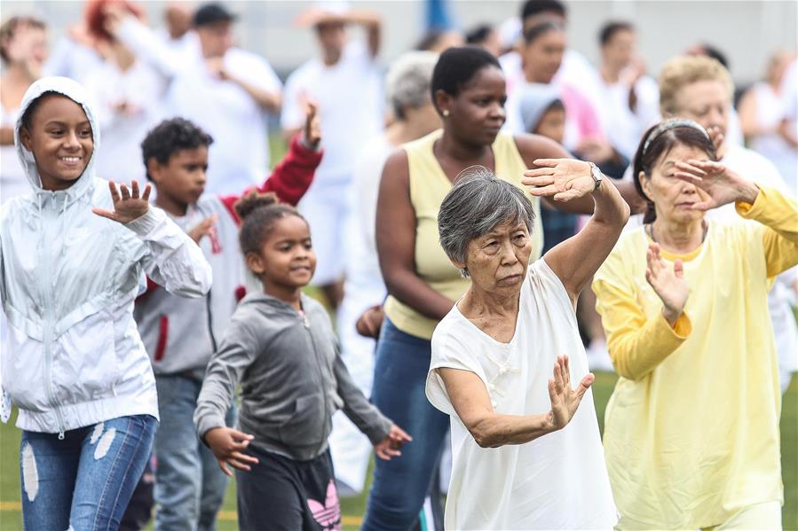 People attend a Tai Chi Chuan practice during a Chinese Lunar New Year celebration in Sao Paulo, Brazil, on Jan. 25, 2020. [Photo / Xinhua]