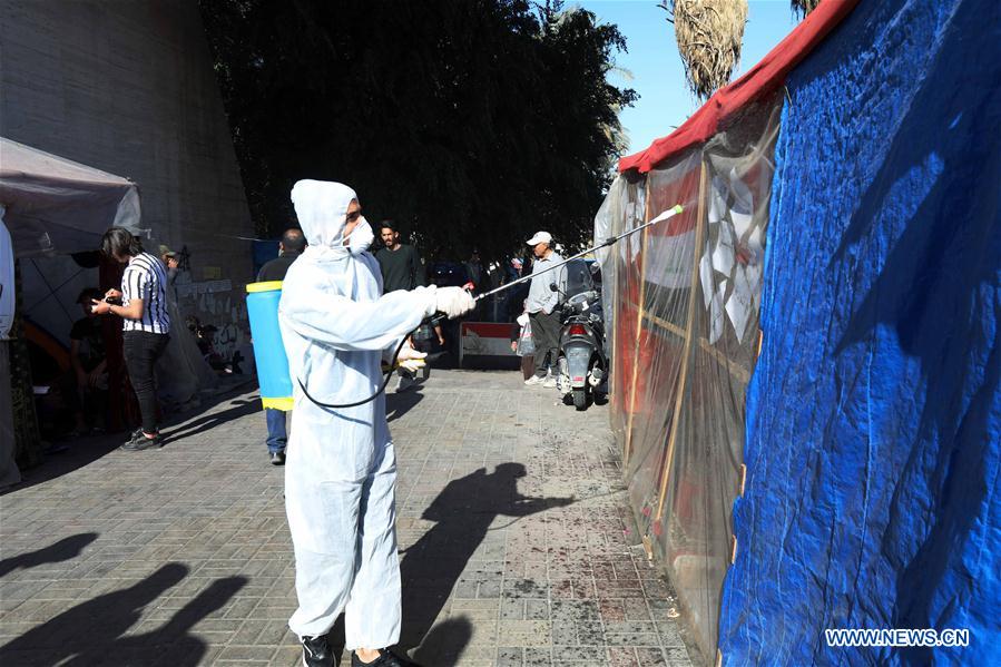 E-mail Xinhua, March 3, 2020A medical worker sterilizes crowded places at Tahrir Square in Baghdad, Iraq, on March 2, 2020. The Iraqi Health Ministry on Monday announced five more cases of COVID-19, bringing the total number of confirmed cases in the country to 26. [Xinhua]