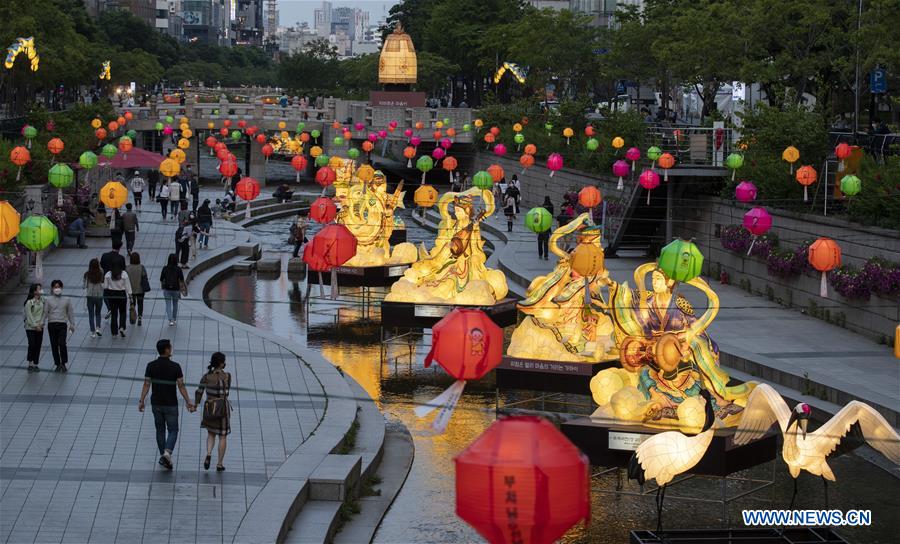 E-mail Xinhua, May 29, 2020People visit the traditional lantern festival along the Cheonggyecheon Stream in Seoul, South Korea, May 28, 2020. The lantern festival lasts from May 20 to June 3 here in Seoul. (Photo by Lee Sang-ho/Xinhua)