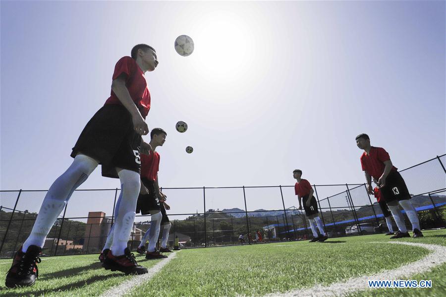 E-mail Xinhua, June 4, 2020Students attend a football training session at a school in Xiaochang Township of Zunhua City, Tangshan, north China's Hebei Province, June 2, 2020. Many schools and kindergartens in China have resumed physical education classes with protective measures against COVID-19. (Photo by Liu Mancang/Xinhua)