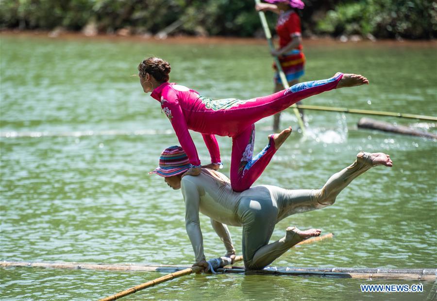 E-mail Xinhua, June 26, 2020People perform single bamboo drifting on water in Chishui, southwest China's Guizhou Province, June 25, 2020. Single bamboo drifting originated in China's Guizhou and requires a person to stand or sit on a single piece of bamboo while performing balancing movements. (Xinhua/Tao Liang)
