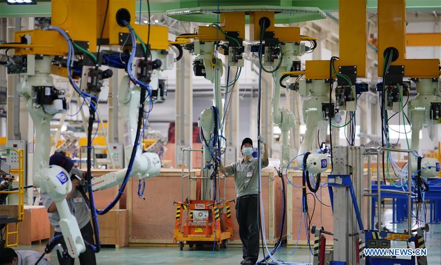E-mail Xinhua, July 18, 2020A worker debugs a robot product at a workshop in the Tangshan Hi-tech Industrial Development Zone in Tangshan, north China's Hebei Province, July 17, 2020. Tangshan Hi-tech Industrial Development Zone has formed a robotics industry with 62 robots and related enterprises. (Xinhua/Mu Yu)
