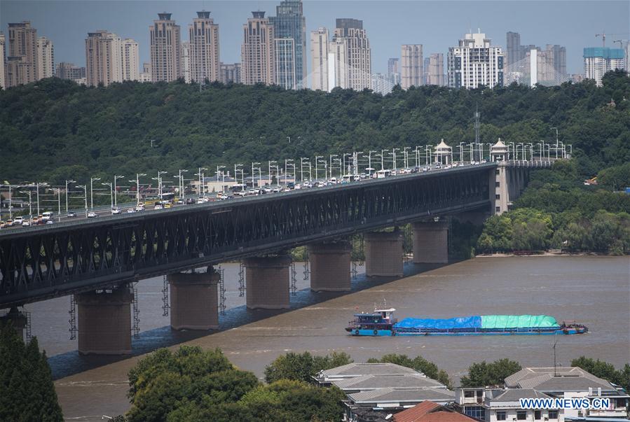 E-mail Xinhua, August 8, 2020A boat sails past the Yangtze River Bridge in Wuhan, central China's Hubei Province, Aug. 7, 2020. The water level at Hankou hydrologic station, a crucial point of the Yangtze River, dropped below the warning water level as of 2 a.m. on Friday. Wuhan downgraded the emergency response for flood control in the Yangtze River and riverside areas from Level II to Level III as of Thursday. (Xinhua/Xiao Yijiu)