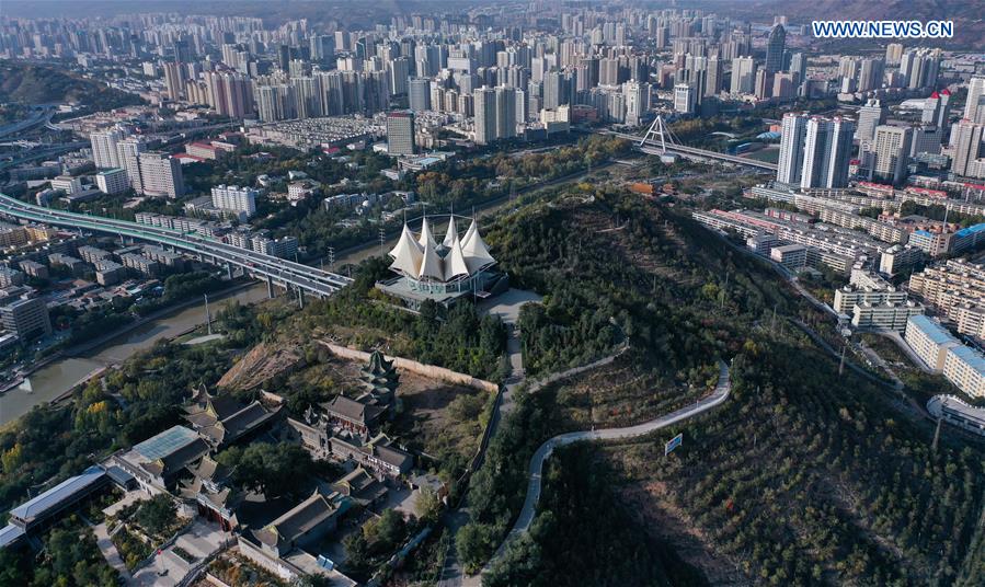 E-mail Xinhua, October 13, 2020Aerial photo taken on Oct. 12, 2020 shows the view of Nanshan park in Xining, northwest China's Qinghai Province. In recent years, Xining has continuously increased the green area at urban area to improve city environment. (Xinhua/Wu Gang)