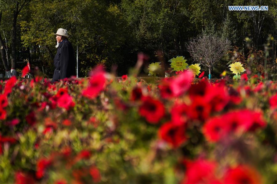 E-mail Xinhua, October 13, 2020A man walks in the Nanshan park in Xining, northwest China's Qinghai Province, Oct. 12, 2020. In recent years, Xining has continuously increased the green area at urban area to improve city environment. (Xinhua/Wu Gang)