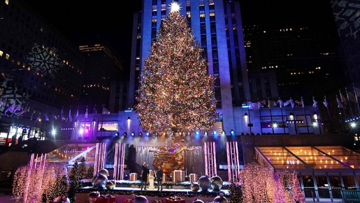 E-mail China.org.cn, December 4, 2020The Rockefeller Center Christmas Tree stands lit in New York, the United States, Dec. 2, 2020. The 75-foot tall Norway spruce is lit by more than 50,000 LED lights as a traditional routine held annually to mark the beginning of another holiday season. [Photo/VCG]