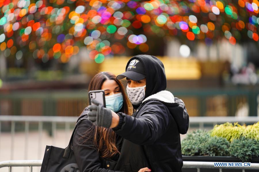 E-mail Xinhua, December 9, 2020People takes a selfie beside festive decorations at Rockefeller Center in New York, the United States, Dec. 8, 2020. The total number of COVID-19 cases in the United States topped 15 million on Tuesday, according to the Center for Systems Science and Engineering (CSSE) at Johns Hopkins University. (Xinhua/Wang Ying)