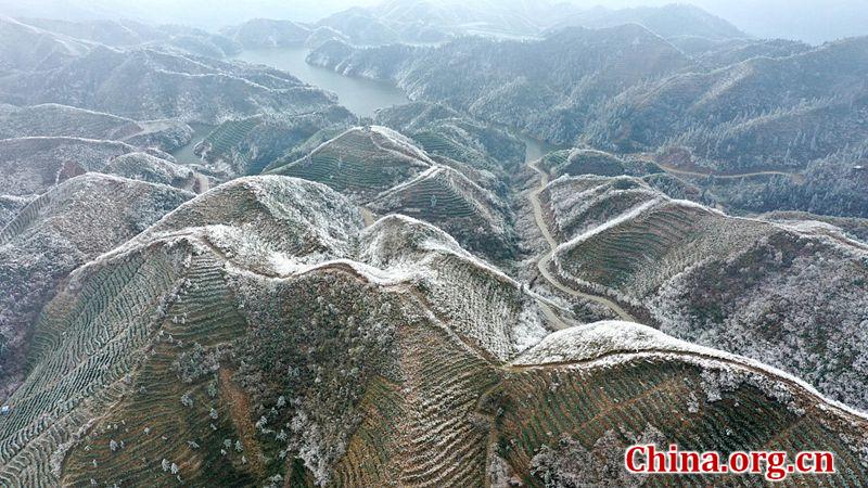 E-mail China.org.cn, December 17, 2020Aerial photo taken on Dec. 16, 2020 shows the organic tea garden at an elevation of 1,100 meters covered by ice and snow due to continual low temperature in Dudong town, Liuzhou city, in south China's Guangxi Zhuang Autonomous Region. The astounding scenery has attracted many visitors. [Photo/VCG]