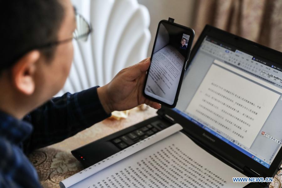 E-mail Xinhua, December 23, 2020A judge discusses cases with a colleague via video at home in Shenyang, northeast China's Liaoning Province, Feb. 4, 2020. Normal life has been disrupted by the COVID-19 pandemic in 2020. However, people managed to stay online to get in touch with each other and continue daily life while they were confined at home. In the meantime, China has been exploring new growth areas in the digital economy and harnessing the boom in the Internet economy to promote the integrated development of the digital economy and the real economy, while fostering new industries and new business forms. (Xinhua/Pan Yulong)