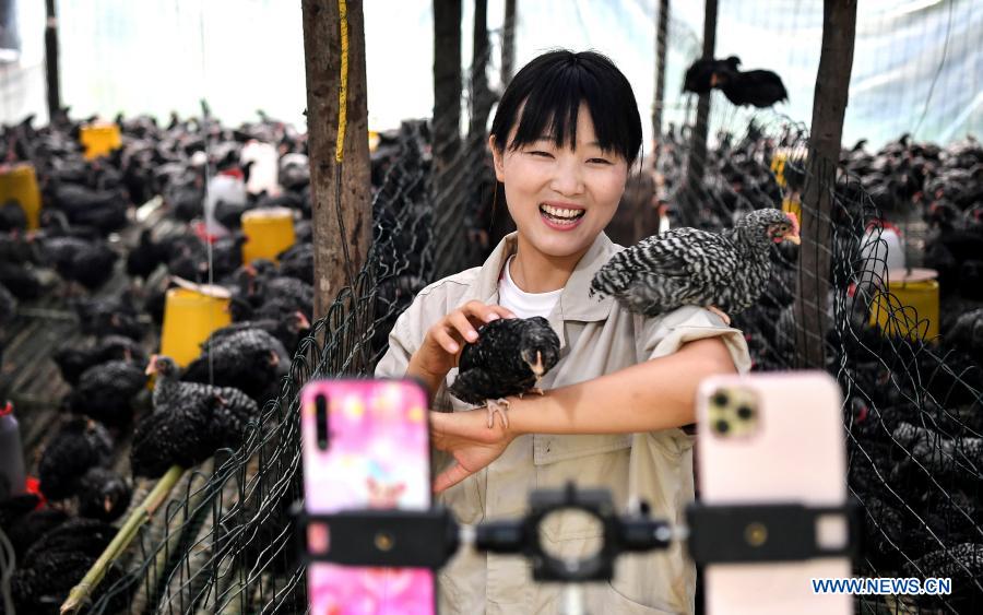 E-mail Xinhua, December 23, 2020Li Meng sells Plymouth Rock chicken through livestreaming in Siping Village of Danfeng County, Shangluo City, northwest China's Shaanxi Province, July 20, 2020. Normal life has been disrupted by the COVID-19 pandemic in 2020. However, people managed to stay online to get in touch with each other and continue daily life while they were confined at home. In the meantime, China has been exploring new growth areas in the digital economy and harnessing the boom in the Internet economy to promote the integrated development of the digital economy and the real economy, while fostering new industries and new business forms. (Xinhua/Liu Xiao)