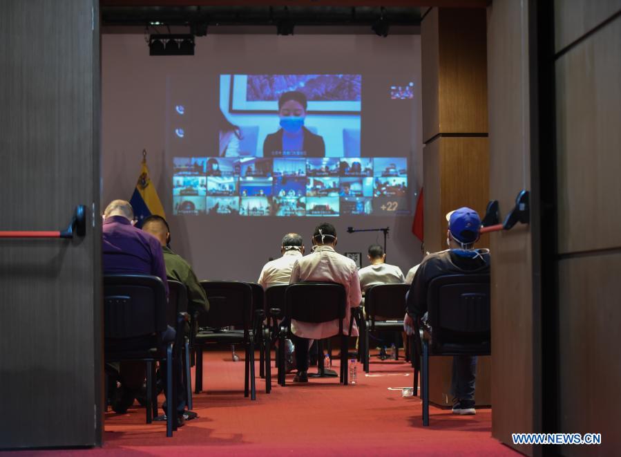 E-mail Xinhua, December 23, 2020Photo taken on March 23, 2020 shows an online meeting on COVID-19 epidemic prevention and control attended by representatives from China and Latin American and Caribbean countries in Caracas, Venezuela. Normal life has been disrupted by the COVID-19 pandemic in 2020. However, people managed to stay online to get in touch with each other and continue daily life while they were confined at home. In the meantime, China has been exploring new growth areas in the digital economy and harnessing the boom in the Internet economy to promote the integrated development of the digital economy and the real economy, while fostering new industries and new business forms. (Xinhua/Salgado)