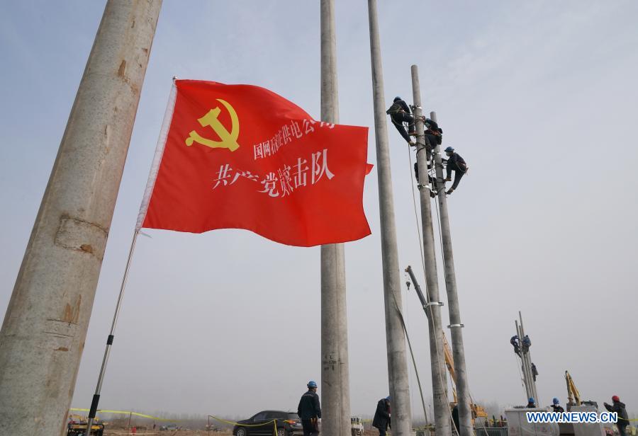 E-mail Xinhua, January 15, 2021Workers install power supply equipment on the construction site of a centralized medical observation center in Shijiazhuang, capital of north China's Hebei Province, Jan. 14, 2021. Construction workers on Wednesday started building a centralized medical observation center in Shijiazhuang, capital of north China's Hebei Province, where clustered COVID-19 cases occurred. The isolation center will likely cover 33 hectares of area near a village in Zhengding County, Shijiazhuang. Three integrated housing producers in Tangshan City, Hebei, have been entrusted to produce 3,000 makeshift wards for the center. Each ward has a space of 18 square meters. (Xinhua/Yang Shiyao)