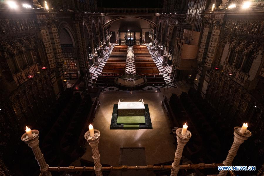 E-mail Xinhua, January 23, 2021Photo taken on Jan. 20, 2021 shows the vacant hall inside the Montserrat Monastery in Montserrat, Spain. The monastery used to be a well noted tourist attraction in Catalonia, but few tourists are seen here since the COVID-19 outbreak. The Spanish Health Ministry on Friday reported 42,885 new COVID-19 cases and 400 deaths in a 24-hour period. The increases lift the country's total number of cases to 2,499,560 and the death toll to 55,441 since the pandemic began. [Photo/Xinhua]