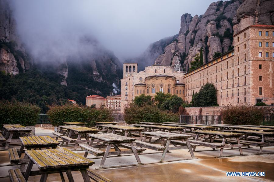 E-mail Xinhua, January 23, 2021Photo taken on Jan. 20, 2021 shows an empty dining area near the Montserrat Monastery in Montserrat, Spain. The monastery used to be a well noted tourist attraction in Catalonia, but few tourists are seen here since the COVID-19 outbreak. The Spanish Health Ministry on Friday reported 42,885 new COVID-19 cases and 400 deaths in a 24-hour period. The increases lift the country's total number of cases to 2,499,560 and the death toll to 55,441 since the pandemic began. [Photo/Xinhua]