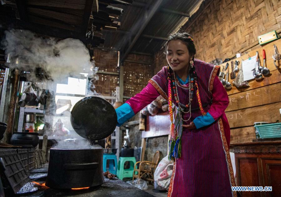 Tashi Yudron prepares dinner on the eve of the Chinese Lunar New Year in Medog, southwest China's Tibet Autonomous Region, Feb. 11, 2021. [Photo/Xinhua]