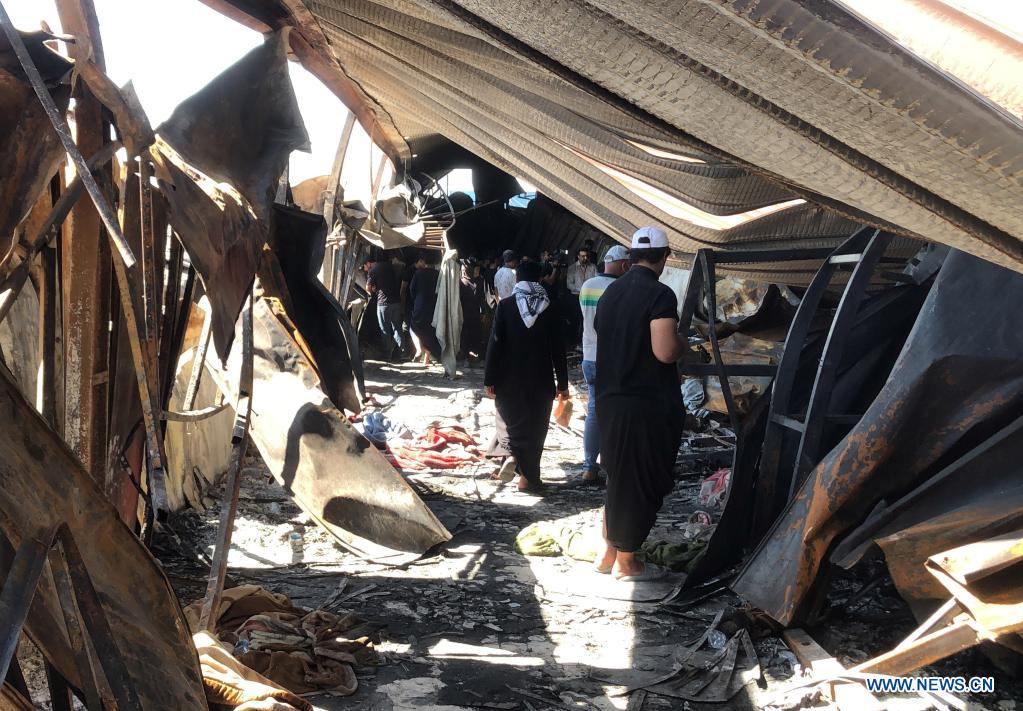 People search remains at the quarantine center in al-Hussein Hospital in al-Nasiriyah, Iraq, July 13, 2021. At least 92 people were killed and dozens wounded in a huge fire that broke out at a hospital in Iraq's southern province of Dhi Qar, the official Iraqi News Agency reported on Tuesday. [Photo/Xinhua]