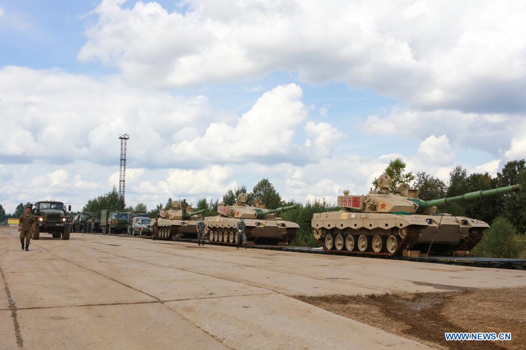 E-mail Xinhua, August 18, 2021Military vehicles of the Chinese People's Liberation Army arrive in Moscow, Russia, Aug. 14, 2021. All of the Chinese military's 17 teams with weapons and equipment have arrived at their venues in Russia, Belarus, Uzbekistan and Iran on Tuesday for the upcoming International Army Games 2021. (Photo by Yu Xiaoping/Xinhua)