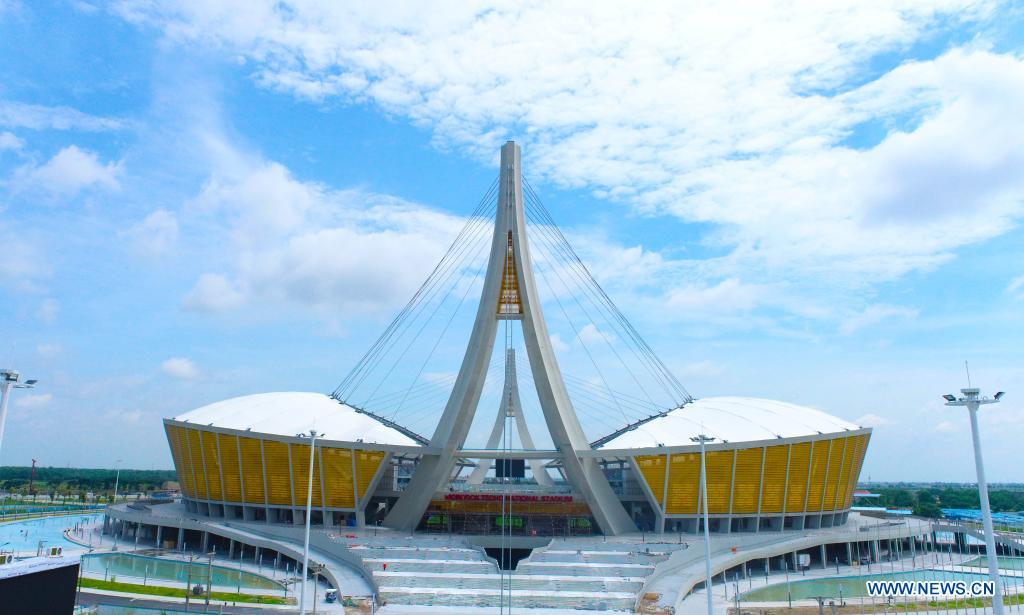 E-mail Xinhua, August 18, 2021Aerial photo taken on May 17, 2021 shows the China-funded national stadium in Phnom Penh, capital of Cambodia. Construction work on a China-funded national stadium in Phnom Penh, capital of Cambodia, had been completed despite the impact of COVID-19, Minister of Tourism Thong Khon said on Tuesday. Khon, who is also the president of the National Olympic Committee of Cambodia, said the 60,000-seat stadium will serve as the main venue for tournaments when Cambodia hosts the Southeast Asian (SEA) Games in 2023. (China State Construction Engineering Corporation/Handout via Xinhua)
