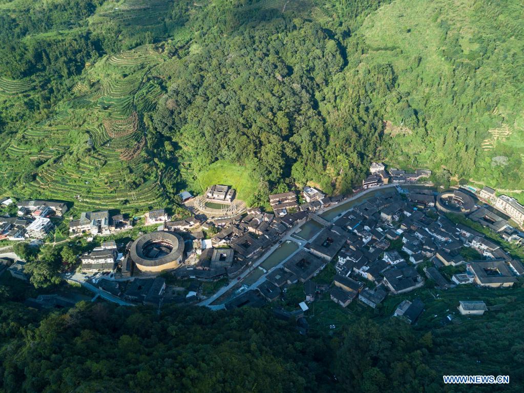 E-mail Xinhua, August 19, 2021Aerial photo taken on Aug. 16, 2021 shows a view of Nanjing County, southeast China's Fujian Province. Relying on Tulou, the unique residential architecture of Fujian Province which was inscribed on the UNESCO's World Heritage List in 2008, Nanjing County has found a sustainable way to develop the rural tourism industry and boost the local economy. (Xinhua/Song Weiwei)