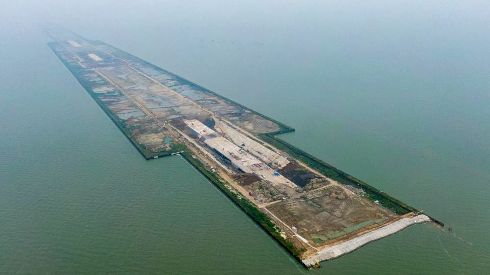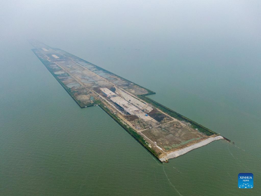 E-mail Xinhua, September 6, 2021Aerial photo taken on Sept. 5, 2021 shows the construction site of Nanquan section of Taihu tunnel, part of the Changzhou-Wuxi Highway, in Wuxi, east China's Jiangsu Province. The main construction of the Nanquan section of the Taihu tunnel was completed on Sunday. Taihu tunnel, China's longest underwater highway tunnel, is part of the Changzhou-Wuxi Highway which has a total length of 43.9 km. The 10.8-km-long, 43.6-meter-wide tunnel is under Taihu Lake, China's third-largest freshwater lake. (Xinhua/Li Bo)
