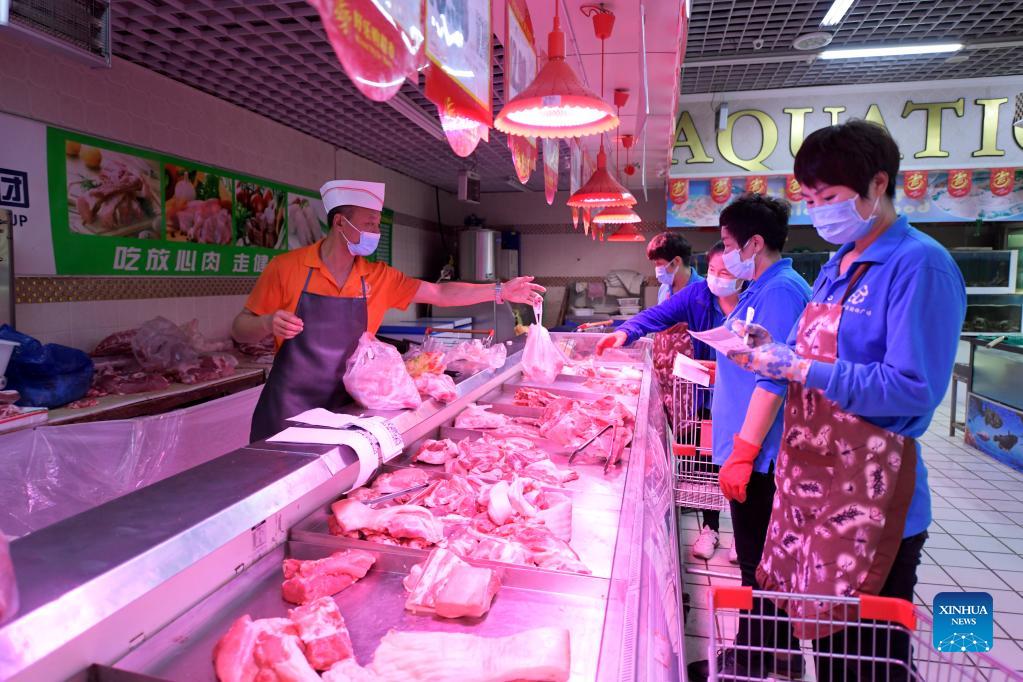 E-mail Xinhua, September 29, 2021Supermarket employees prepare meat ordered online by residents under close-off management in Bayan County of Harbin, northeast China's Heilongjiang Province, Sept. 27, 2021. Local authorities have prioritized delivery services to ensure the supply of necessities for residents under close-off management. The pricing of commodities remains stable in the county. [Photo by Wang Jianwei/Xinhua]