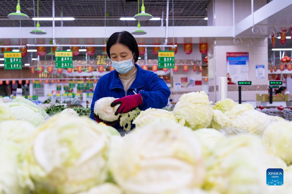 E-mail Xinhua, September 29, 2021A supermarket employee prepares vegetables ordered online by residents under close-off management in Bayan County of Harbin, northeast China's Heilongjiang Province, Sept. 27, 2021. Local authorities have prioritized delivery services to ensure the supply of necessities for residents under close-off management. The pricing of commodities remains stable in the county. [Photo by Xie Jianfei/Xinhua]